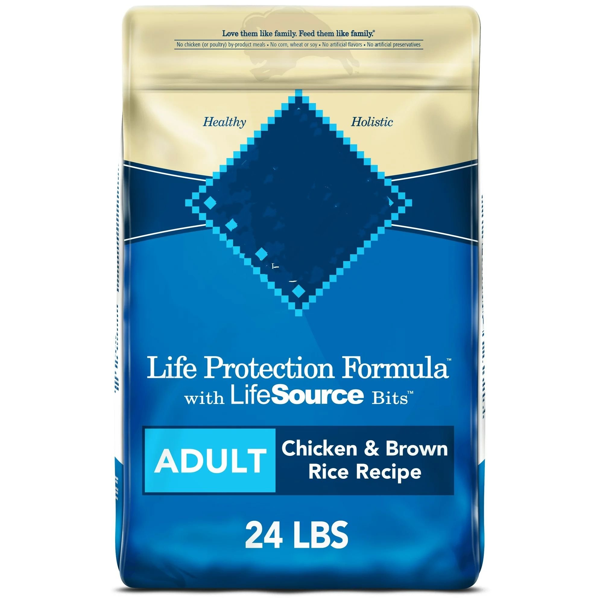 5.Contains one (1) 24 lb. Bag or 34 lb. Bag of Life Protection Formula Adult Dry Dog Food, Chicken and Brown Rice